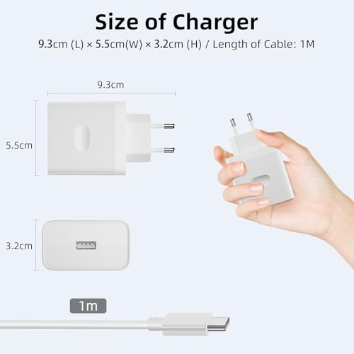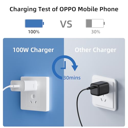 Mejorada Cable USB C 1Metro y Cargador 100W: el para OPPO cargador USB A admite SUPERVOOC de 100W. Se necesitan 30 minutos para cargar un teléfono móvil Oppo de 100w al 100%. El requisito es que este cargador de 100 W se debe utilizar con este cable oppo. También admite carga de 80W, 67W, 65W, 33W y 30W de OPPO. Los teléfonos de menos de 100 W tardan más en cargarse al 100 %.