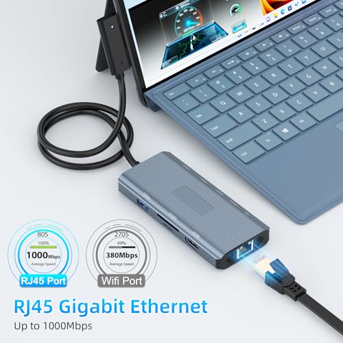 [2025 nuevo] Estación de acoplamiento para Surface – 2 años de garantía – Base de superficie 10 en 1 con HDMI Ethernet SD/TF 5* USB PD, estación de acoplamiento para Surface Pro 11/10/9/8/X/7/6/5