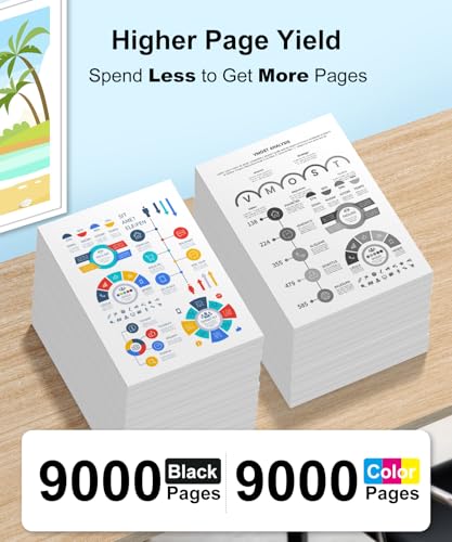Menos reemplazos: 522 impresiones de tinta negra de 3.7 fl oz de hasta 7500 páginas; tinta de color de 3.7 fl oz (combinado) y 7500 páginas (5% de cobertura A4), lo que reduce la frecuencia de reemplazo.