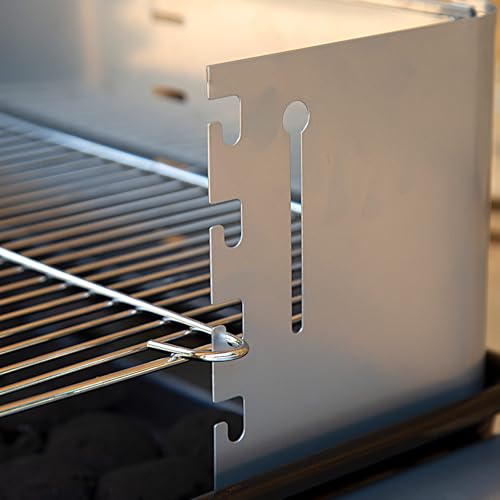 Funcionalidad: parrilla con dos mangos extraíbles y altura regulable en cuatro posiciones para cocinar más o menos cerca de las brasas