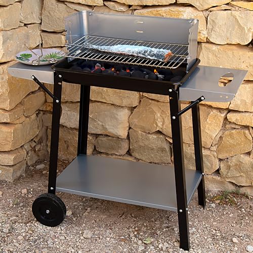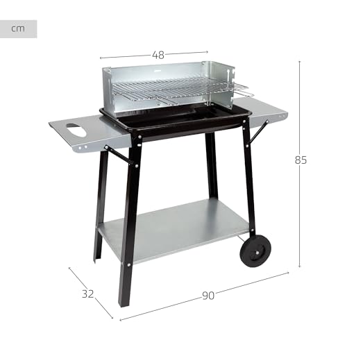 Especificaciones: Aktive 52973 – Barbacoa carbón y leña 90x32x85 cm con control de temperatura y dos mangos extraíbles, 4 alturas regulables, 2 ruedas y asa de transporte, Fácil y rápida de montar