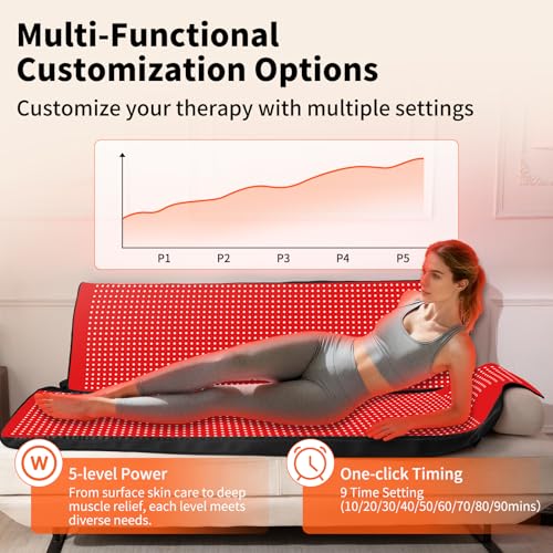 Tecnología de limpieza: nuestra almohadilla de terapia de luz roja ofrece una alta potencia de hasta 140 W con mayor intensidad de luz. La luz infrarroja penetra en profundidad y aporta un efecto poderoso a los tejidos superficiales, localizados y profundos. Adecuado para la privación del sueño, rutinas de oficina sedentaria, personas mayores con espalda, problemas de piel y personas con dolor muscular después del ejercicio