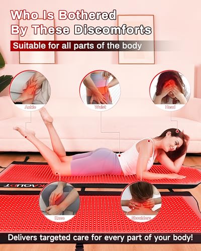 Diseño de 72 x 33 pulgadas y estructura de doble alfombrilla desmontable (awesome + inferior), se puede utilizar plana o encajar como una bolsa de dormir de terapia de luz roja estilo capullo. Personalizado para uso doméstico, proporciona tratamientos específicos de cara a pies mientras cubre l. a. espalda, las articulaciones y las piernas