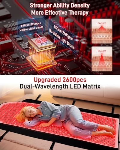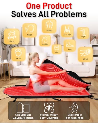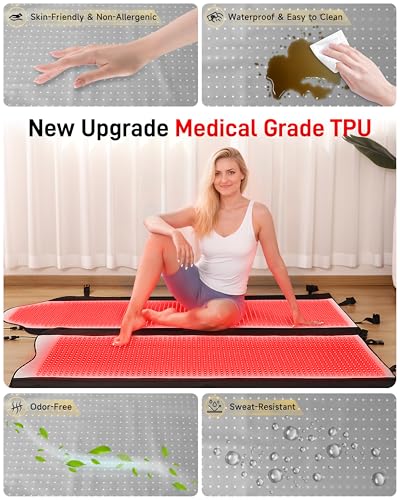 Fácil de usar: mide 72.0 x 33.4 pulgadas, nuestra alfombrilla de terapia de luz roja de cuerpo completo ofrece una cobertura extragrande para una experiencia de terapia de luz roja de 360°. El área única de la cabeza proporciona terapia de luz roja individual para la cabeza o la cara para una terapia de luz roja de cuerpo completo sin fisuras