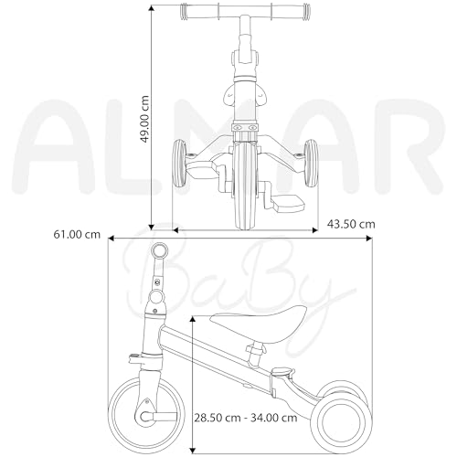 Especificaciones: ALMAR Baby Triciclo 3 en 1rosa, Bicicleta niño correpasillos, Bicicleta con Pedales, Bici bebé de 18 Meses a 5 años, 25kg, Asiento Ajustable