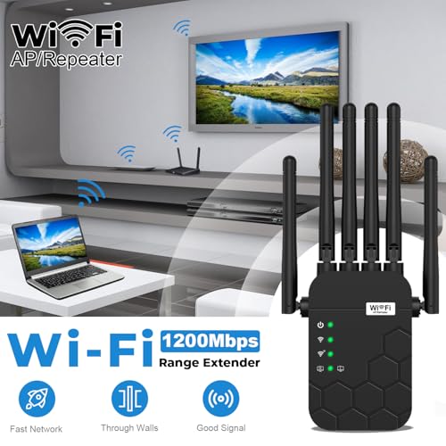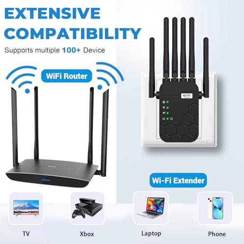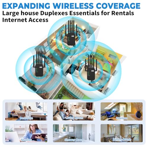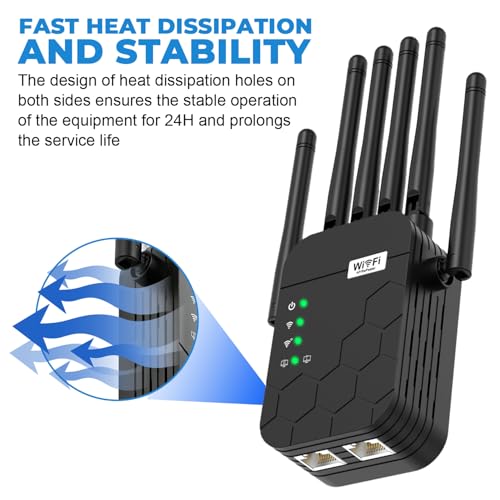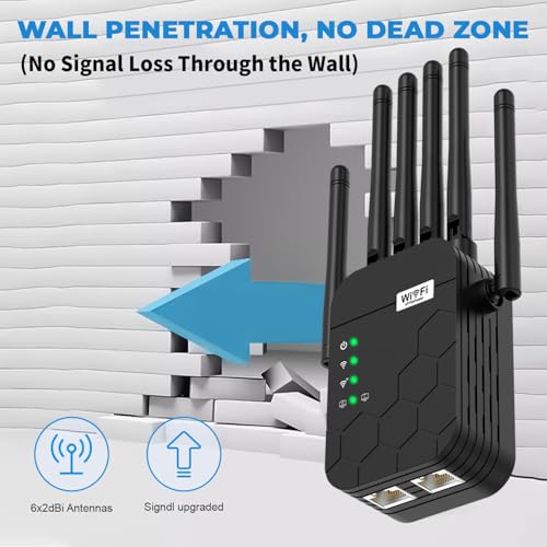 Amplificador de señal WiFi 2026, doble banda 5.8 GHz y 2.4 GHz, 6 veces más rápido, WiFi Booster cubre hasta 13880 pies cuadrados, repetidor WiFi de 1.2 Gbps con puerto Ethernet, conecta más de 100