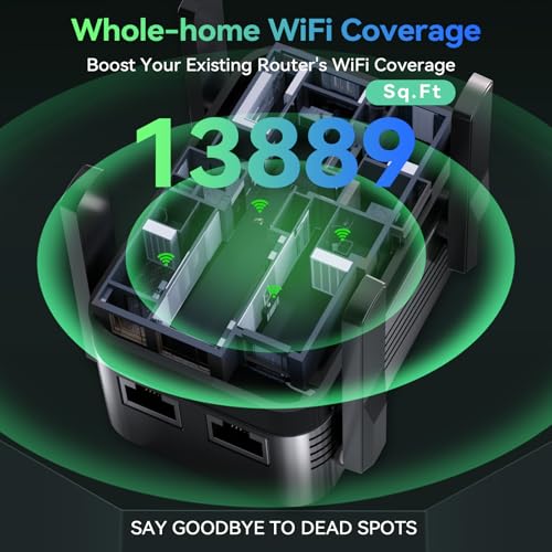 Amplificador de señal WiFi 2026, extensor de Internet que cubre hasta 13389 pies cuadrados para el hogar, repetidor WiFi de largo alcance con puerto Ethernet, amplificador de enrutador inalámbrico