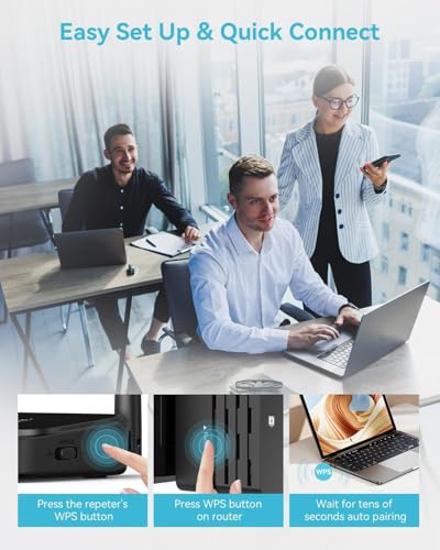 Fácil de configurar: estarás conectado a tu extensor de alcance wifi en solo unos minutos. Todo lo que necesita hacer es acercarse a su enrutador de Internet y presionar el botón WPS en su extensor de refuerzo wifi, luego presione el botón WPS en su enrutador y espere el emparejamiento automático. El amplificador de Internet para wifi amplía fácilmente el alcance de su red WiFi doméstica y mantiene todos sus dispositivos móviles conectados sin tener que comprar más.