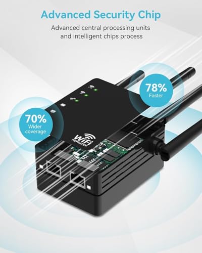 Amplia cobertura en 12880 pies cuadrados. ft: Amplía tu cobertura WiFi hasta 12,880 pies cuadrados. pies con el extensor wifi. Este amplificador de señal de extensores wifi para el hogar puede ser muy eficaz para ayudarte a eliminar zonas muertas frustrantes, búfer y abandono de videollamadas, proporcionando una conexión a Internet ininterrumpida y confiable.
