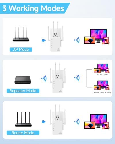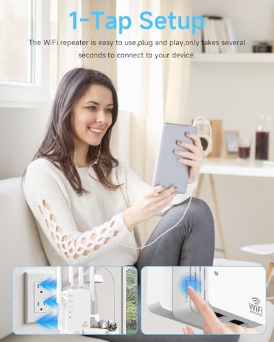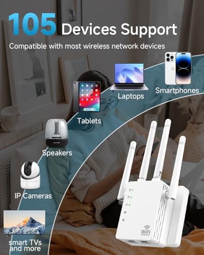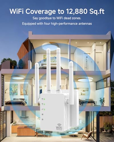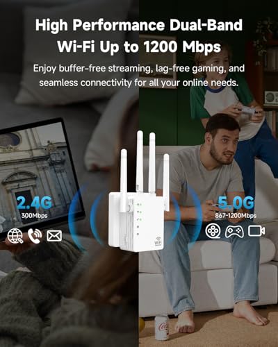 Amplificador de señal WiFi de 1200 Mbps – Amplificador de velocidad WiFi de doble banda, compatible con EasyMesh, 4 antenas direccionales (12880 pies cuadrados), amplificador WiFi compatible con 105