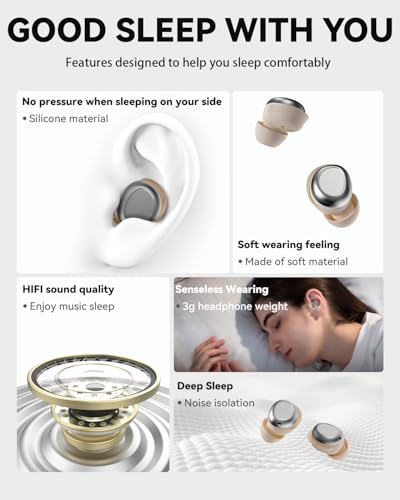 Escuche toda la noche: estos Mini cascos para dormir duran 6 horas con una carga completa y hasta 48 horas con el estuche de carga. Tenga en cuenta: los auriculares bluetooth se apagarán automáticamente cuando el tiempo de reproducción alcance 1 hora en modo de suspensión