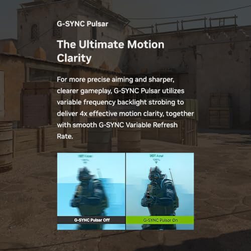 Tecnología Pulsar NVIDIA G-SYNC: con tecnología NVIDIA G-SYNC Pulsar, la pantalla ofrece un movimiento excepcionalmente suave y imágenes más limpias de movimiento rápido, lo que te ayuda a mantenerte bloqueado durante un juego intenso y de alta velocidad.