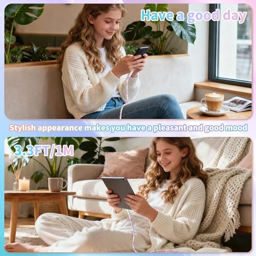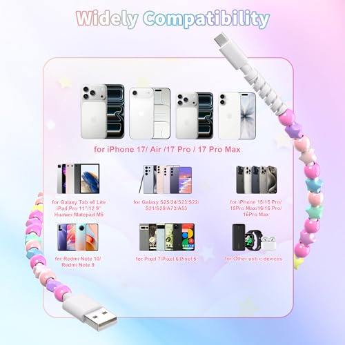 Cable de carga USB A a USB C de 3.3 pies: este bonito cable de carga USB C con cuentas de 3.3 pies tiene un aspecto moderno y encantador, que puede añadir un efecto decorativo personalizado a la habitación, y también puede evitar eficazmente que las mascotas masticen y prolongar la vida útil del cable de datos.