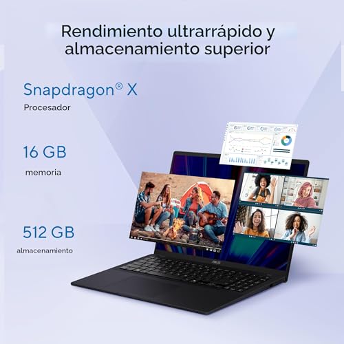 ASUS Vivobook 16 Laptop, Pantalla WUXGA de 16” 60Hz, Qualcomm Snapdragon X, GPU Qualcomm Adreno, 16GB RAM, 512GB SSD, Windows 11, Quiet Blue, X1607QA-DS54