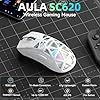 Aula SC620 Wireless Gaming Mouse, Tri-Mode 2.4GHz/USB-C/BT5.3 Computer Mouse with 12000 DPI, Programmable Macro Gamer Mouse with Rapid Fire Key, RGB Light Gaming Mice for PC/Laptop/Mac (Line White)