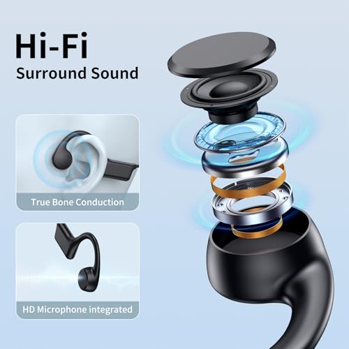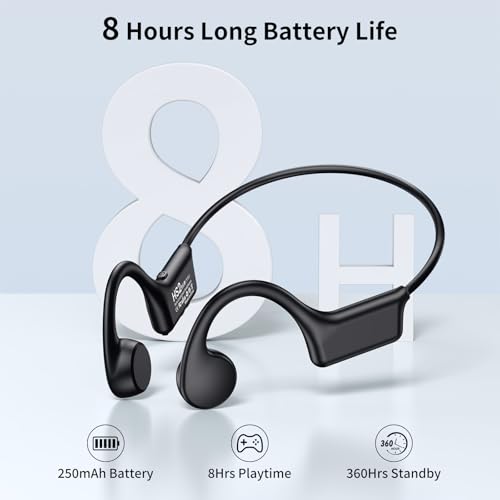 8 HORAS DE TIEMPO DE REPRODUCCIÓN: la duración de la batería de estos auriculares bluetooth te permite disfrutar de hasta 8 horas de música, llamadas, audiolibros y podcasts continuos. Bluetooth 5.3 garantiza un emparejamiento rápido, proporcionando una conexión estable de hasta 10 M, alta calidad de sonido y transmisión de voz clara desde el micrófono incorporado, perfecto para llamadas telefónicas. Además de eso, ¡estos auriculares de oído abierto tienen un tiempo de espera de hasta 360 horas!