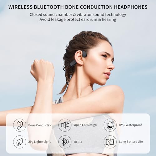 Auriculares Conducción Osea, Auriculares Deportivos Bluetooth 5.3, Auriculares Oreja Abierta Inalambricos con Micrófono, IP55 Impermeables Deportivos Auriculares para Ciclismo Correr, Carga USB-C