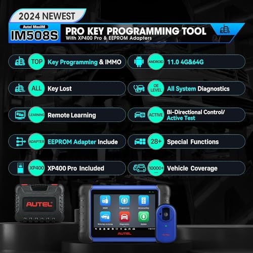 🥇【2024 IM508S PRO, con XP400 Pro】Autel MaxiIM IM508S PRO es modelo programación clave superior Autel, su nivel programación clave es comparable al IM608/ IM608 Pro, mientras que reduce presupuesto a mitad. Autel IM508S PRO es igual a IM508S + XP400 Pro, que ofrece programación clave profesional como todas claves l0st (Leer PIN / CS), Agregar nuevo llavero, Hacer clave distribuidor, Lectura y escritura datos inmovilizador, Copia seguridad datos IMMO, También incluye capacidad diagnóstico.
