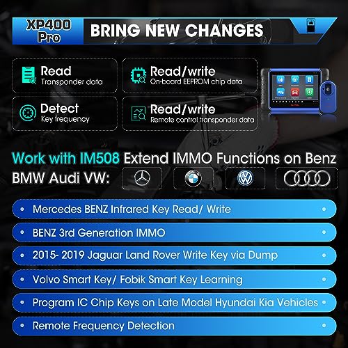 🥇【XP400 Pro Key Chip Programmer & EEPROM + MCU Adapter Add on】Autel MaxiIM IM508S PRO equipado con XP400 Pro y varios adaptadores EEPROM, no solo puede hacer programación chip clave para Benz 3rd, BMW CAS 4/3/2, VW/Audi MQB, pero también ECU lectura/escritura, cifrado MC9S12, tarjeta IC, llave infrarroja Mercedes, detección frecuencia remota. IM508S PRO admite 2015-2019 Jaguar Land Rover Write Key Via Dump, Volvo Smart Key/ Fobik Smart Key Learning, Llaves chip IC en último modelo Hyundai Kia.