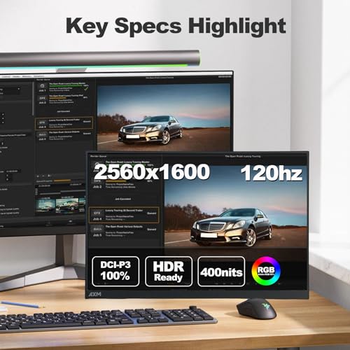 AXM Monitor portátil de 16″ 2.5K 2.5K QHD IPS 120Hz Sincronización adaptativa HDR sin parpadeo 400 liendres 100% DCI-P3 USB-C HDMI Gaming & Travel para laptop Compatible con Windows, MacBook, teléfono