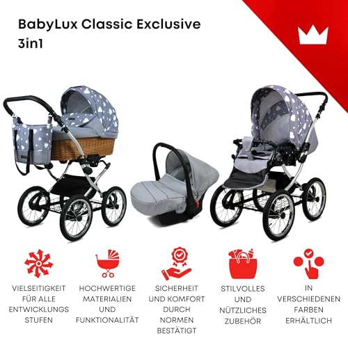 Multifuncional: El sistema de viaje para bebés Classic Exclusiveby BabyLux puede servirte como un cochecito profundo, un cochecito de bebé normal y un asiento de automóvil con la opción de montarlo en el marco del cochecito. Es ajustable para adaptarse a bebés y niños pequeños. ¡Nuestros cochecitos de bebé crecen junto con sus pequeños usuarios!