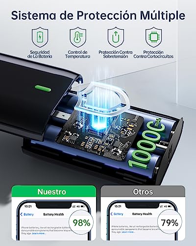 Pantalla LED & Función de Seguridad – Este bateria portatil inteligente pantalla LED digital con luz indicadora tradicional que una visualización más clara de la energía restante. 2023 nuevo chip de alta precisión proporciona protección de seguridad inteligente contra sobrecorriente, sobrecalentamiento y funciones de sobrecarga, por lo que puede comprar con confianza y usar con placer.