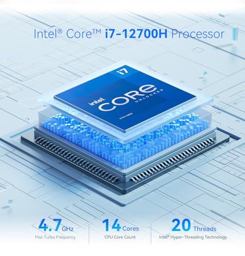 Beelink Mini PC SEi12 MAX, Intel Core i7-12700H (14C/20T, hasta 4,7GHz), 32GB DDR5 500GB M.2 PCIe4.0 SSD, 4K Triple Display, Thunderbolt 4, HDMI2.1, DP1.4, BT5.2, WiFi6, 2.5G RJ45, Mini Ordenador