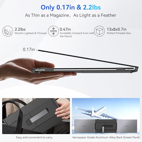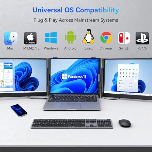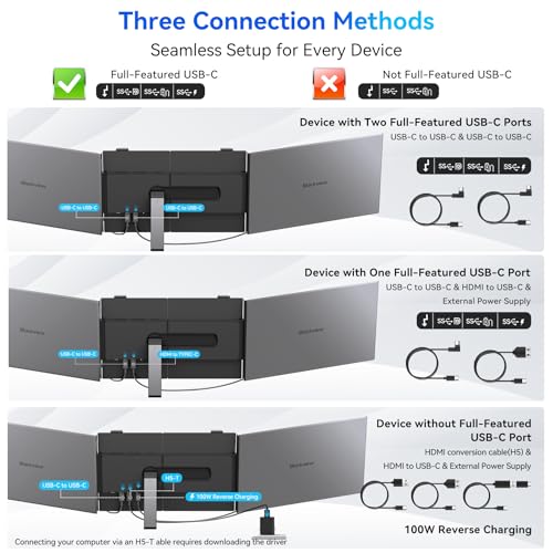 Especificaciones: Blackview DCM6 – Extensor de pantalla triple para laptop, pantalla externa portátil 1080P FHD IPS de 14 pulgadas, dos cables USB C de viaje para laptop de 13 a 17 pulgadas, compatible con Windows/Mac