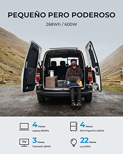 [Pequeño pero Potente] – Con un inversor de AC de 600W, una batería LiFePO4 de 268Wh y 8 salidas, esta central eléctrica mantiene su equipo esencial funcionando mientras viaja o durante cortes de energía en el hogar.