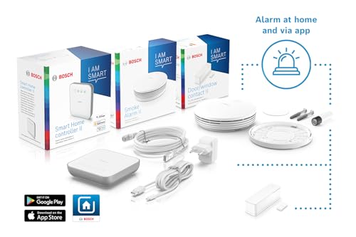 Especificaciones: Bosch Smart Home Paquete básico de protección antirrobo, formado por el Detector Humo II y Contacto Puerta/Ventana II, con Control en la App Compatible Apple Homekit