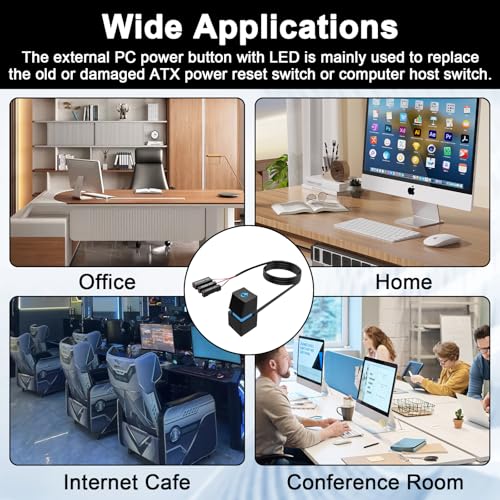 Ampliamente Aplicable: Extensión de botón de encendido de pc es adecuado para su uso en hogares, oficinas, hoteles, cibercafés y otros lugares. El diseño portátil de ordenador placa base power on off le permite llevarlo a donde necesite usarlo.