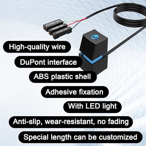 Interruptor de Llave de Eje Mecánico: Nuestro botón encendido pc adopta el diseño de un teclado mecánico, con efectos de sonido de teclas nítidos y emocionantes. Apagado para arranque remoto externo pc adopta un diseño autoadhesivo, que es fácil de pegar y de operar. También está equipado con una luz indicadora led.