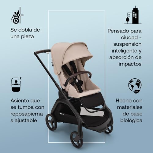 Especificaciones: Bugaboo Dragonfly Carrito Urbano, Silla de Paseo Ligera y Compacta, Plegable con Una Sola Mano en cualquier Posición, Suspensión Completa, Cesta Inferior XL, Chasis Negro y Capota Desert Taupe