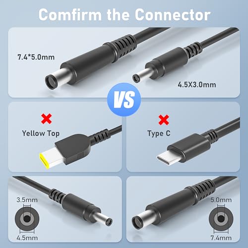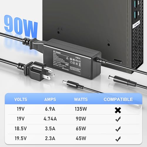 Burflo La fuente de alimentación del cargador de 90 W es compatible con cargador de 90 W 19 V 4.74 A, 65 W 18.5 V 3.5 A a través de una punta de 7.4 x 5.0, cumpliendo con los requisitos de energía de más computadoras portátiles. (no compatible con modelos de 135W)