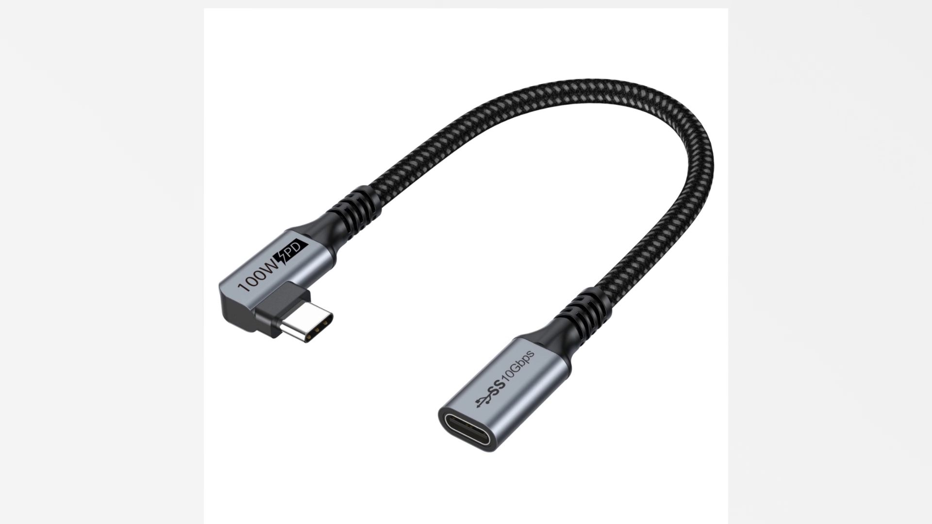 Especificaciones: Cable de extensión USB C pequeño de 1 pie, extensor corto USBC en ángulo recto, USB 3.2 (10Gbps) macho a hembra de 100 W PD carga de video 4K para MacBook Pro/Air, concentrador USBC, micrófono, unidad