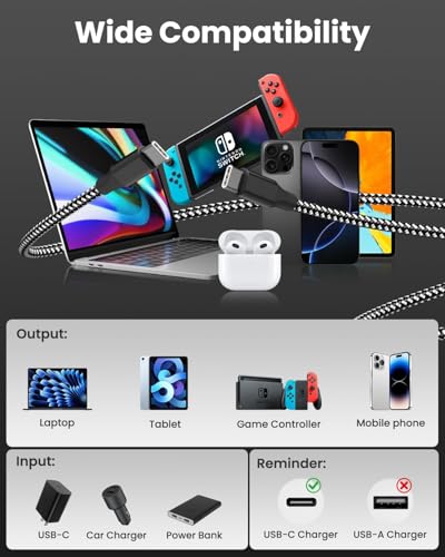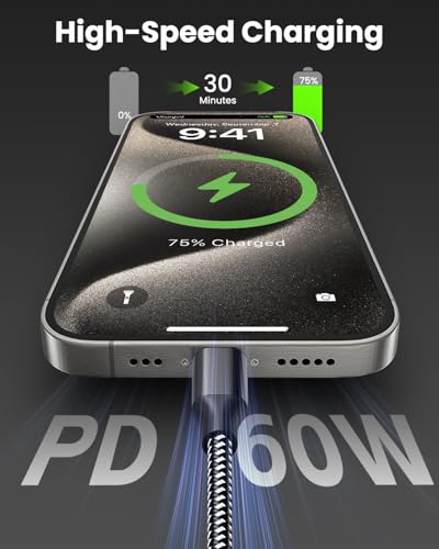 Carga rápida de 60 W y transferencia de datos: admite velocidades de carga rápida de hasta 3 A y transferencia de datos de 480 Mb/s. Logra hasta 60 W de carga cuando se empareja con un cargador USB C de 60 W (60 W = 20 V x 3 A)
