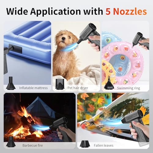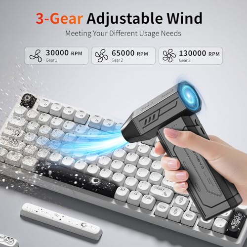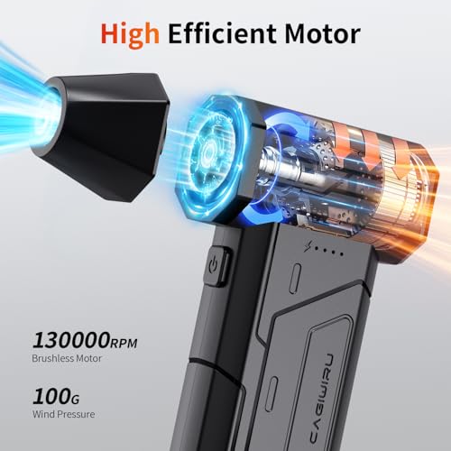 CAGIWIRU Plumero eléctrico de aire inalámbrico de 130000 rpm, soplador sin escobillas recargable, mini soplador ajustable de 3 engranajes con luz LED, removedor de polvo para computadora, casa