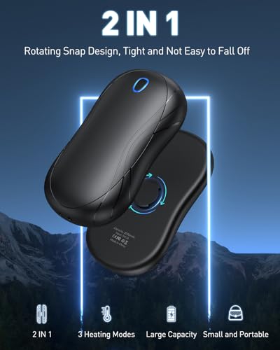 ♟[Calentador de Manos Recargable]: Diseño de succión magnética 2 en 1, cabe en los bolsillos de la mano izquierda y derecha. Reponga la temperatura en sus manos a tiempo cuando esté al aire libre, pescando, caminando, acampando, esquiando o viajando. También es el calentador de mano portatil perfecto para aquellos que viajan al trabajo o a la oficina cuando hace frío.