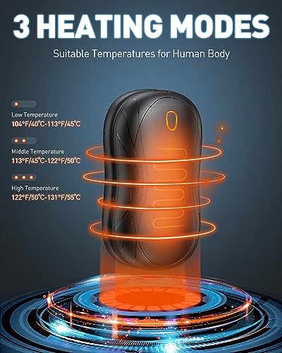 Especificaciones: Calentador de Manos, Cnkeeo Calienta Manos Recargable de Bolsillo, Temperatura 40-55℃ con 3 Niveles de calefacción Ajustables, Calentador para Raynauds, Camping, Christmas Regalos