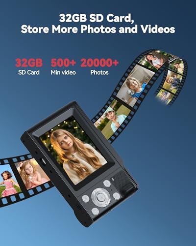 Camara de Fotos Digital Compacta: 48MP Cámara 16X Zoom con Tarjeta 32GB – Camara de Fotos Digital Infantil Enfoque Automático – Videocamara para Principiantes Niños Adultos Negro