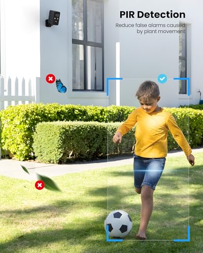 Detección Humana más Inteligente: Esta función PIR al aire libre de la Cámara de Seguridad puede proporcionarle efectivamente información importante de alarma. La Cámara puede distinguir entre personas, animales o automóviles en función de la imagen de un objeto en movimiento. Si solo necesitas detectar a alguien, puedes abrir esta función. Esta función no se puede activar si necesita ver animales pequeños o vehículos. No hay duda de que pertenece a la excelente categoría de cámaras inalámbricas para la seguridad del hogar.