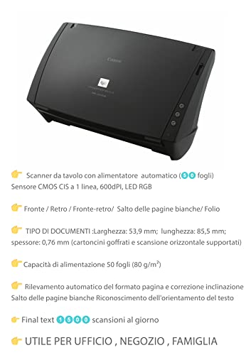 Especificaciones: Canon Image FORMULA DR-2010M CIS LED RGB, 24 bits, 210 x 148 mm, 50 hojas (Reacondicionado)