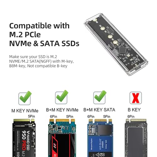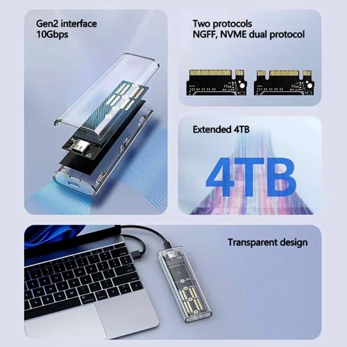 ✅【Diseño transparente con buena disipación de calor】Diseño transparente que no solo es resistente y duradero, le permite conocer el estado de funcionamiento del equipo en tiempo real sino que también proporciona una excelente disipación de calor, dándole a su SSD el mejor rendimiento y una vida útil más larga.