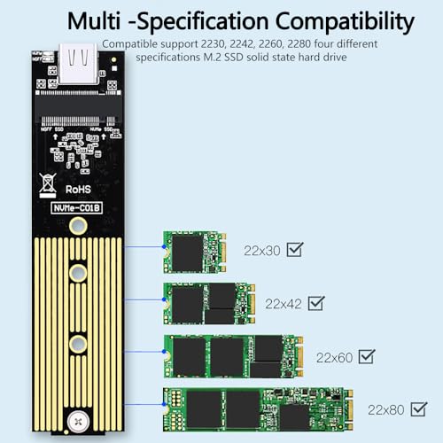 Especificaciones: Carcasa M.2 Carcasa nvme m.2 Carcasa ssd m2 nvme,Carcasa Disco Duro ssd Caja Disco Duro Lector Disco Duro 10Gbps USB3.1 Gen2 para Discos Duros 2230/2242/2260/2280 M-Key M.2 con UASP