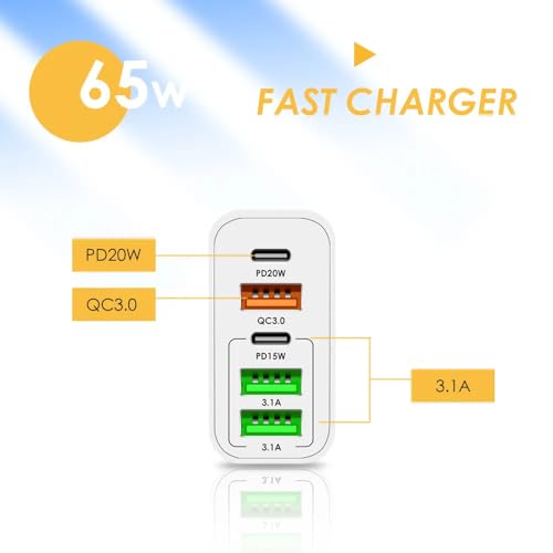 Especificaciones: Cargador de movil Cargador USB 5 Puertos de Carga 65W Carga rápida Adaptador USB C Cargador Universal Apto para Todo Tipo de Dispositivos móviles