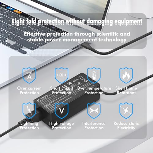 Calidad: certificado FCC o ROHS. Il nostro prodotto è dotato di tecnologia avanzata per la sicurezza, che garantisce protezione contro cortocircuiti, sovratensioni, sovracorrenti e surriscaldamento interno. Puoi stare tranquillo nell’utilizzare questo caricabcritor senza preoccuparti di surriscaldamenti o danni potenziali al tuo laptop. Puoi stare certo che il nostro prodotto è 100% nuovo dal produttore, garantendo affidabilità e prestazioni