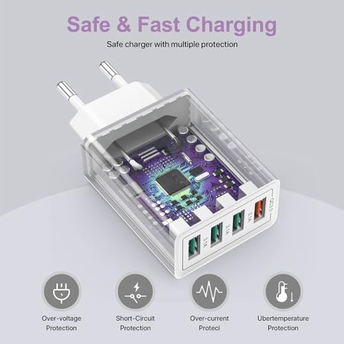 【Compatibilidad Universal】Adaptador de corriente USB múltiple compatible con iPhone 14 /15/14Plus/14Pro/14 Pro Max/15/16/13/13Mini/13Pro/ 13 Pro Max/12/12Pro/12 Pro Max/12Mini/11/11Mini/11 Pro/XR/Xs/Xs Max/X/8/7/6 ,Huawei P40/P30/P20/P10/Mate10 , HTC 10, OnePlus 5, LG G5, G6, V20, V30, HTC 10, Nokia 8, LG, Powerbank, Tablet.