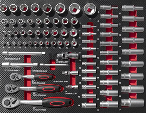 Especificaciones: Carro de herramientas 7 cajones con puerta lateral, con herramientas 6 modulos EVA ROJO Y NEGRO