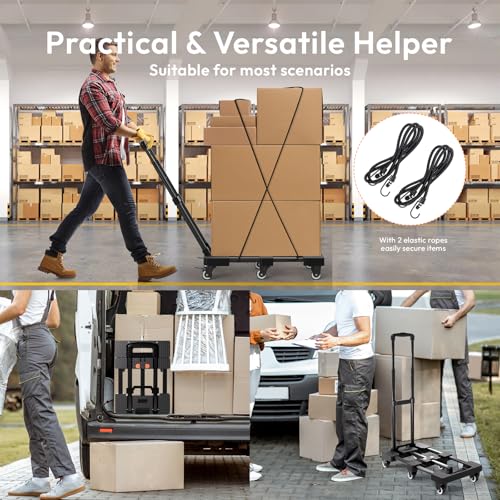 Carro de mano plegable de 500 libras, carrito portátil de alta resistencia, carrito de equipaje plegable de 6 ruedas con 2 cuerdas elásticas, carrito compacto para un fácil movimiento