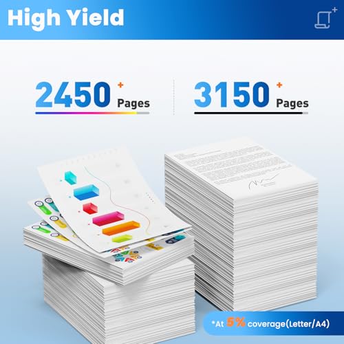 Cartuchos de tóner 206X Alto rendimiento de página: Alto rendimiento de hasta 3150 páginas para cartuchos de tóner negro 206X y 2450 páginas para 206x cartucho de tóner cian/magenta/amarillo cobertura del five% Carta/A4. Imprima documentos o gráficos claramente y adecuados para impresión estándar de oficina/hogar.